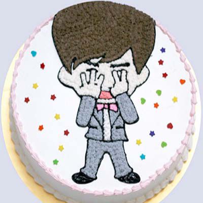 Bánh kem L13 vẽ hình chibi oppa hàn quốc siêu xinh tone màu xanh