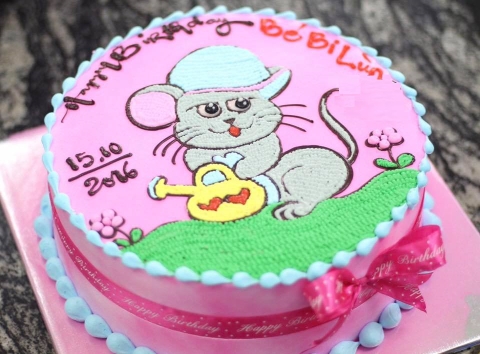 Mẫu bánh kem vẽ hính chú chuột đáng yêu