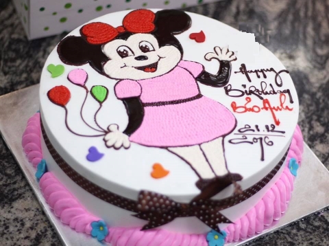 Bánh sinh nhật hình chuột mickey màu hồng xin xắn và đáng yêu.