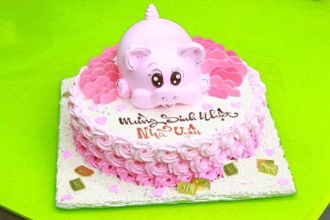 Chú heo màu hồng với thân hình “ú nu” và đôi mắt to tròn cùng chiếc mũi lớn trên chiếc bánh kem nhận được rất nhiều yêu thích từ khách hàng. Nó còn là lời chúc cho sự nghiệp của người nhận luôn vững chãi và gặt hái nhiều luôn thành công nhờ năng lực, giàu lòng yêu thương và sự cần mẫn.