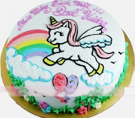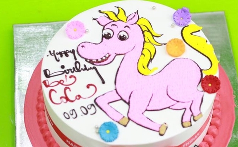 Những chú ngựa được vẽ hình ngộ nghĩnh và độc đáo hòa vào sắc màu tươi mát sống động trên những lớp kem ngọt ngào thơm mát, sẽ là chiếc bánh kem vô cùng thú vị dành tặng cho bé gái nhà bạn.
