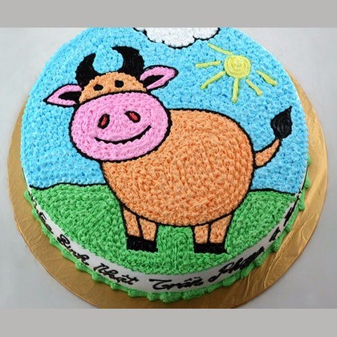 Bánh kem vẽ hình con trâu ngộ nghĩnh và đáng yêu dành cho những bé trai tuổi sửu.