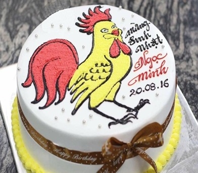 Bánh kem dành cho bé trai tuổi dậu vẽ hình chú gà trống rất hấp dẫn và thú vị.