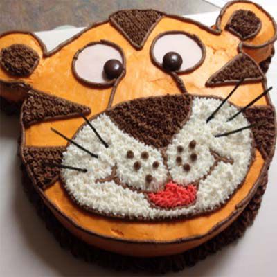 Chiếc bánh kem tạo hình mặt chú cọp ngộ nghĩnh đáng yêu.