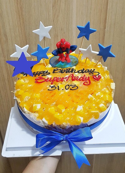 Bánh bông lan trứng muối sinh nhật Y02 trang trí đơn giản nhiều topping ăn bao ngon