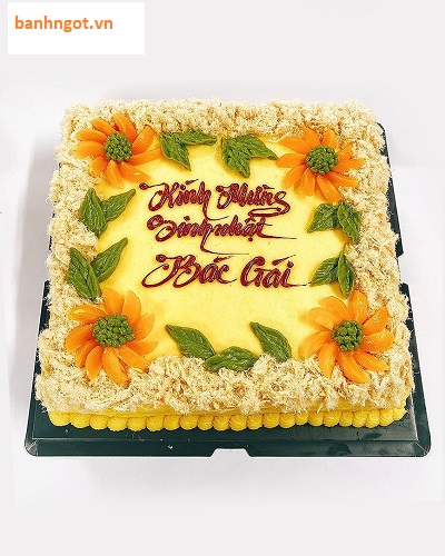 Nếu đã chọn món quà tặng sếp thì không được đơn giản nhưng cũng không nên cầu kỳ quá nhiều, do đó chiếc bánh quà tặng vào ngày sinh nhật sao cho sếp sao cho nổi bật là sự lựa chọn hợp lý. Sếp chắc chắn luôn là những người thích sự thăng tiến trong công việc, do đó một chiếc bánh bông lan trứng muối hình vuông hay chữ nhật sang trọng hay gắn thêm đôla sẽ được sếp chú ý đến bạn ngay.