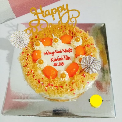 Bánh bông lan trứng muối sinh nhật Y09 ít phụ kiện nhiều topping chà bông phomai