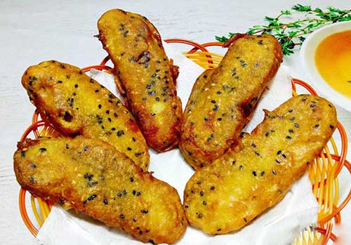 Để góp phần tạo nên chiếc bánh chuối chiên thành công bạn có thể sử dụng thêm các topping đi kèm: mè, dừa, khoai lang, phô mai,.... Hương vị thơm ngon của bánh chuối sẽ kết hợp và hòa tan với sự thơm ngon của các topping ăn kèm, tạo nên sự khác biệt với các loại bánh khác.
