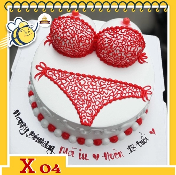 Bánh kem bựa hài hước 18+ X04 bộ bi.ki.ni cực chất ren đỏ bá đạo hài hước