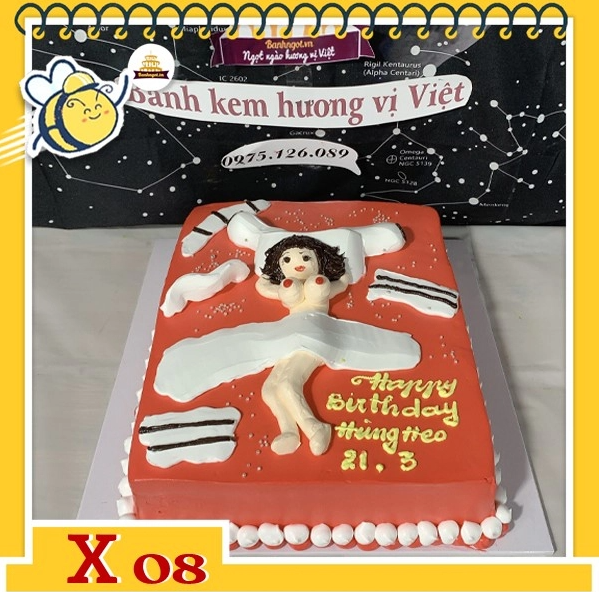 Bánh kem bựa hài hước 18+ X08 bánh vuông cô gái nằm mời gọi bá đạo