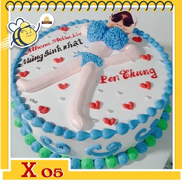 Bánh kem bựa hài hước 18+ X01 hình bikini màu xanh ghép ảnh vui vẻ