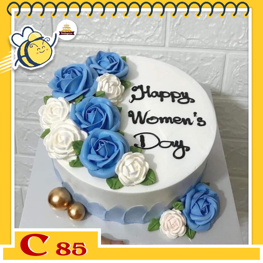 Bánh kem 20/10 C85 hoa trắng xanh thanh lịch