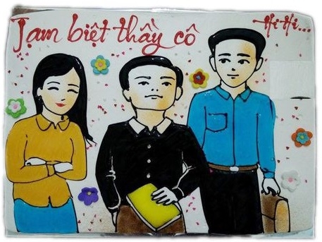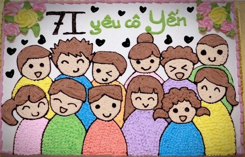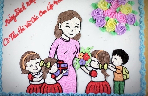 Một chiếc bánh sinh nhật tạo hình cô và các học trò, cùng đứng gần bên nhau trong tình thương thân ái. Với thiết kế đơn giản nhưng chiếc bánh kem cũng nói lên rất nhiều ý nghĩa, đầy ắp tình cô trò.