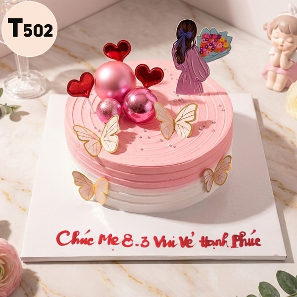 Bánh kem 8/3 T502 phụ kiện cô gái và bướm vàng sang chảnh