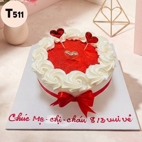 Bánh kem 8/3 T511 nhung đỏ rực rỡ và nơ thắt quyền quý