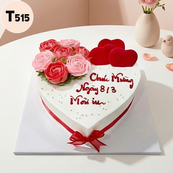 Bánh kem 8/3 T515 vườn hoa hồng trên trái tim trắng lãng mạn