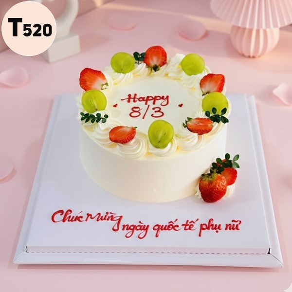 Bánh kem 8/3 T520 Minimalist thanh lịch với nho xanh và dâu tây