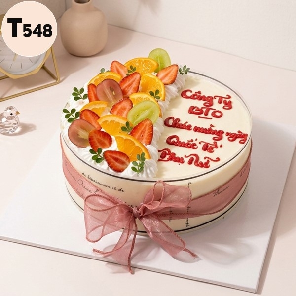 Bánh kem 8/3 T548 – Đẳng cấp nơ voan quý phái phối trái cây tươi rực rỡ