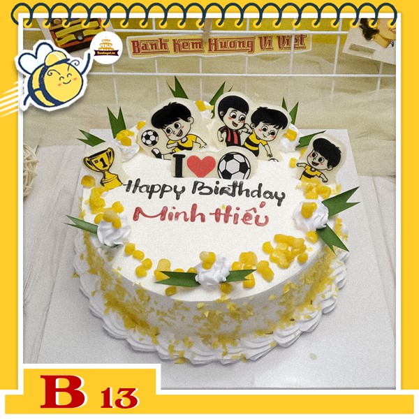 Bánh kem bắp B13 cho bé trai đơn giản thêm phụ kiện bóng đá ngộ nghĩnh