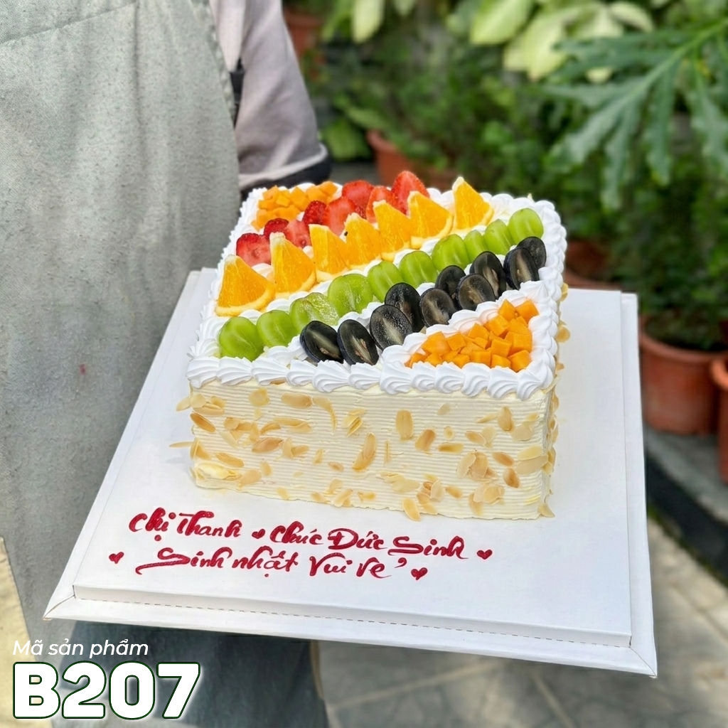 Bánh kem bắp B207 hình vuông trái cây rực rỡ