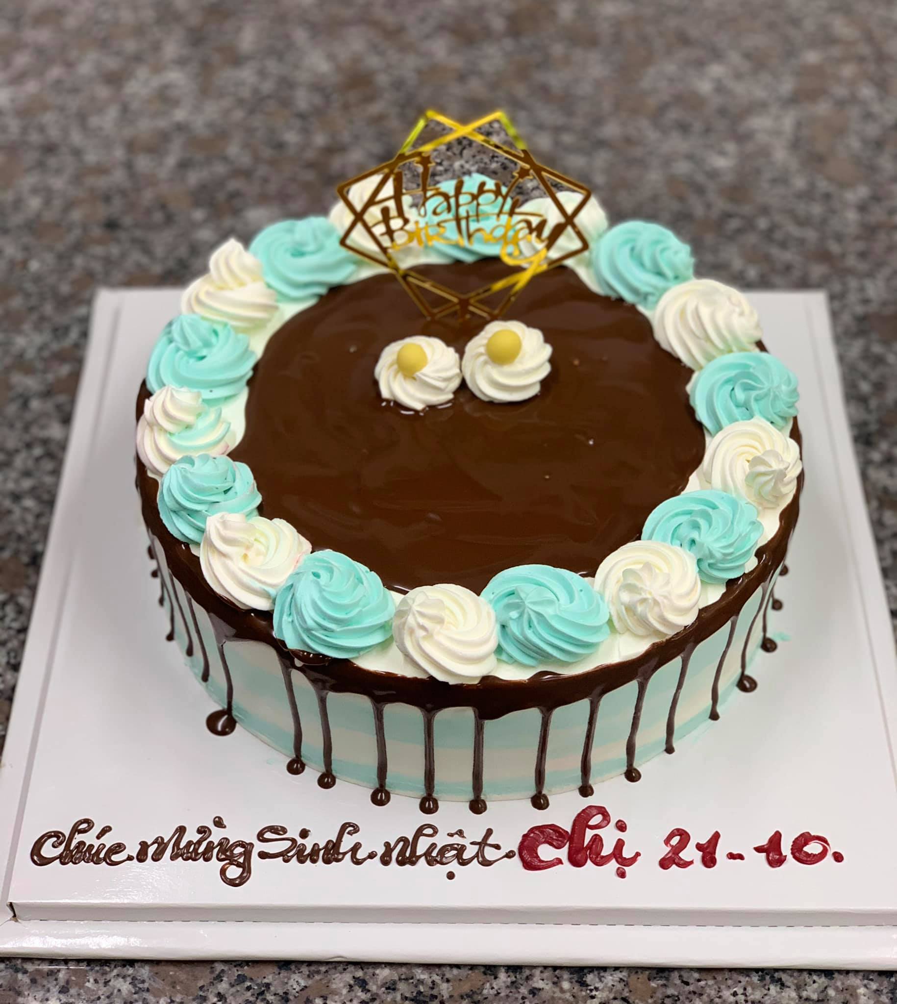Bánh kem sinh nhật H335 tặng chồng màu xanh nước biển viền kem trắng