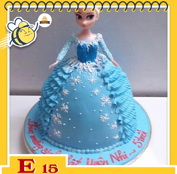 Bánh kem búp bê E15 elsa cả bánh là tà váy màu hoa tuyết lung linh siêu đẹp