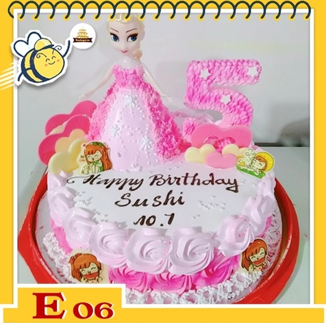 Bánh kem búp bê E06 búp bê elsa màu hồng nền hồng có số tuổi cực đẹp