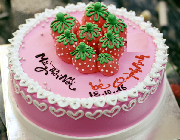 Làm bánh kem dâu tây như thế nào để tặng bé nhân ngày thôi nôi hay sinh nhật? Mẫu bánh có tạo hình trái dâu tây xinh xắn chính là mẫu bánh kem dâu tây , làm bánh dâu được nhiều người lựa chọn nhất hiện nay. Chiếc bánh có màu hồng phấn nhẹ nhàng, dễ thương điểm thêm đó là các chi tiết trang trí hình trái tim nhẹ nhàng, tinh tế.