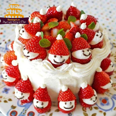 Nổi bật trên phần bánh kem trắng muốt là tạo hình những người tuyết nhỏ xinh từ những trái dâu tây tươi đỏ thắm, căng mọng. Mỗi người tuyết đều có biểu hiện vô cùng vui vẻ, đáng yêu giống như những người bạn nhỏ chân thành đang chúc phúc cho bé trong buổi lễ đặc biệt. Trái dâu tây căng tròn, tươi mới với vị chua chua, ngọt ngọt kết hợp cùng vị bánh béo ngậy chắc chắn sẽ khiến bạn cảm thấy vô cùng ngon miệng khi thưởng thức.