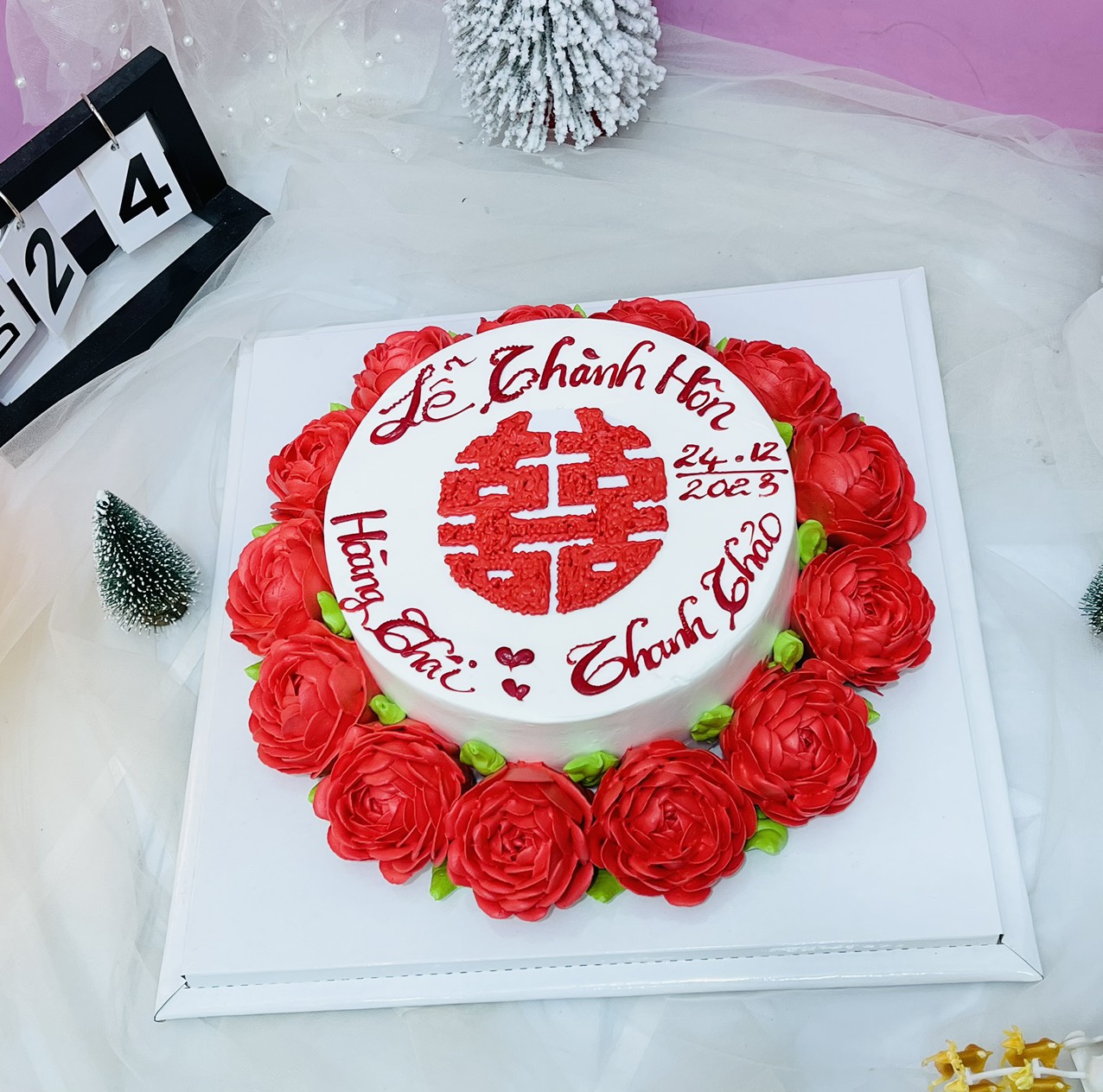 Mẫu bánh kem chữ Song Hỷ mừng lễ Thành hôn