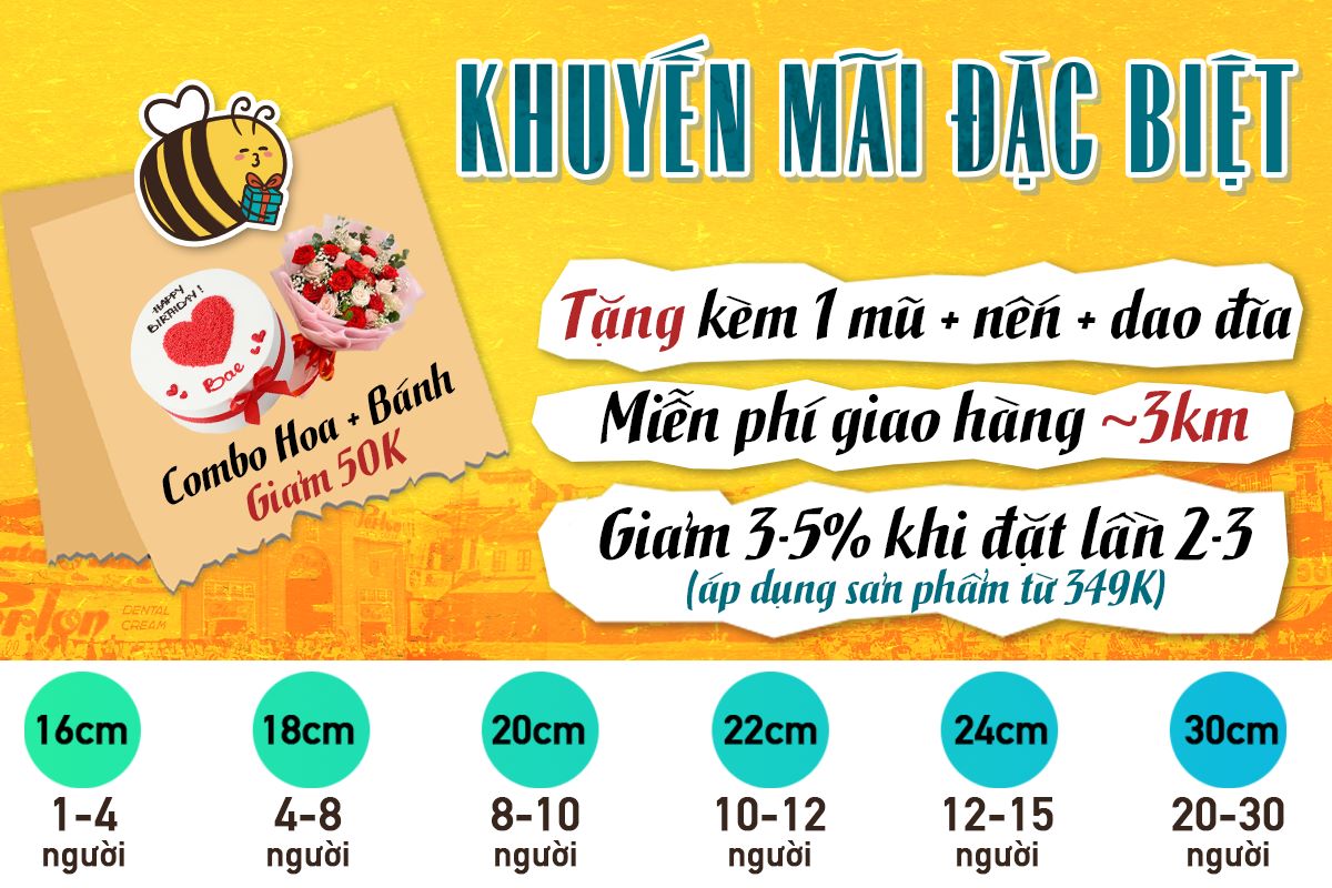Tặng kèm 1 mũ sinh nhật + nến nhỏ/nến số tuổi