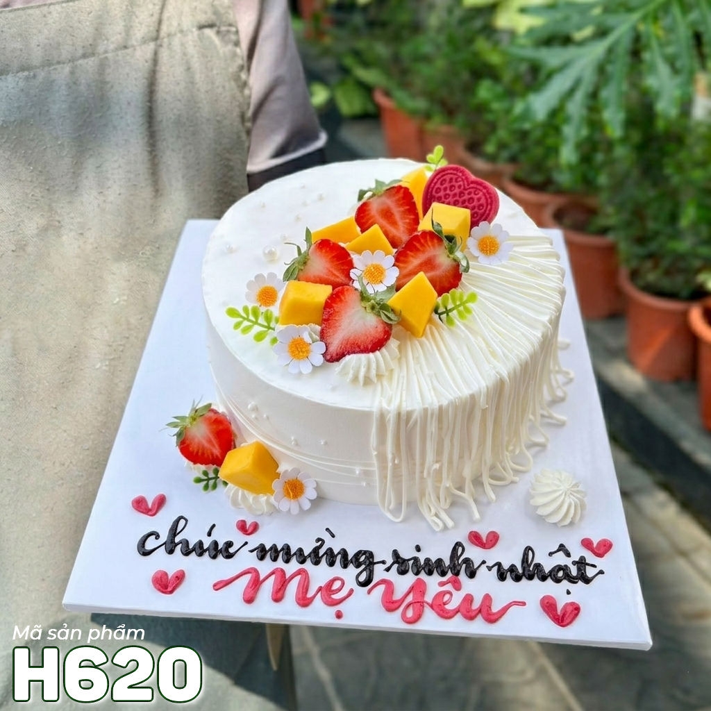Bánh kem H620 trang trí sợi kem hiện đại mix trái cây