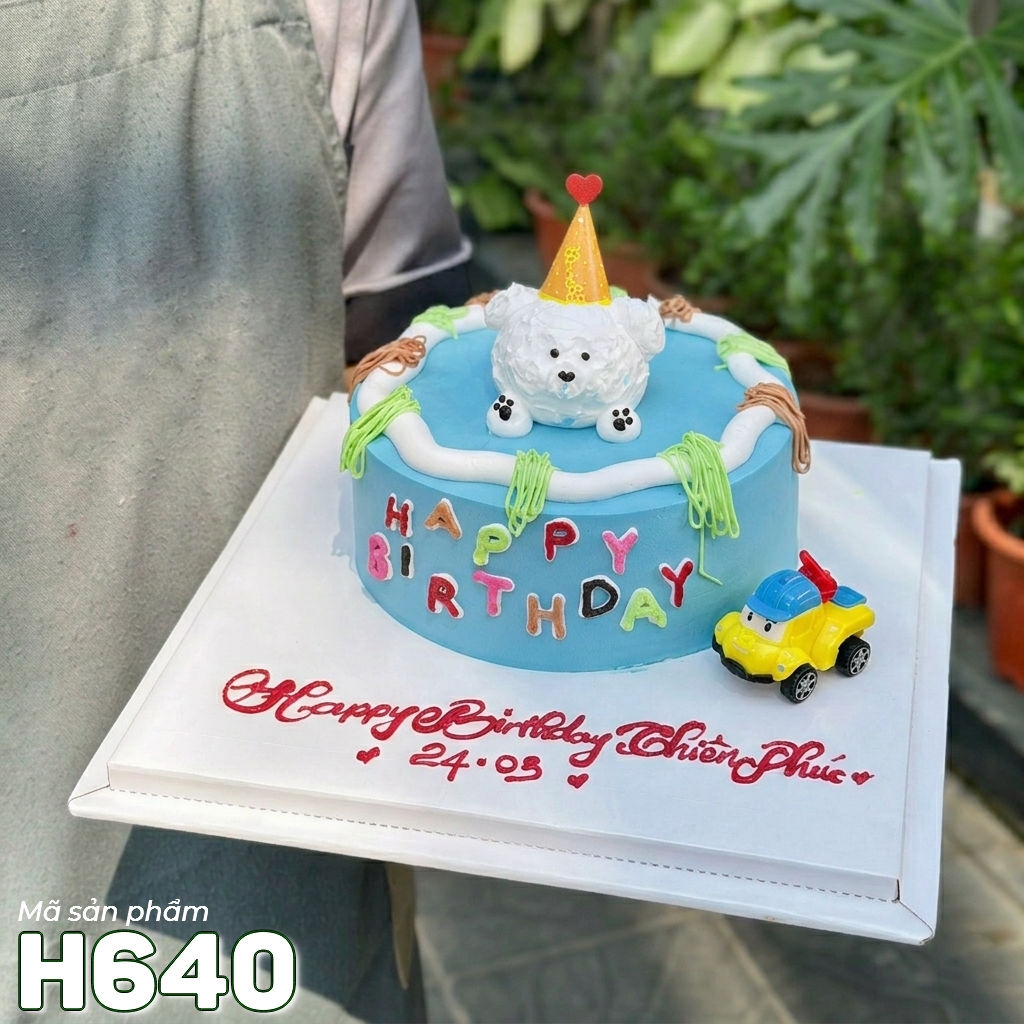 Bánh kem H640 cún trắng và xe ô tô đồ chơi cho bé trai