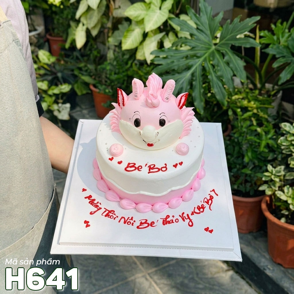 Bánh kem H641 tạo hình rồng hồng xinh xắn mừng thôi nôi bé yêu