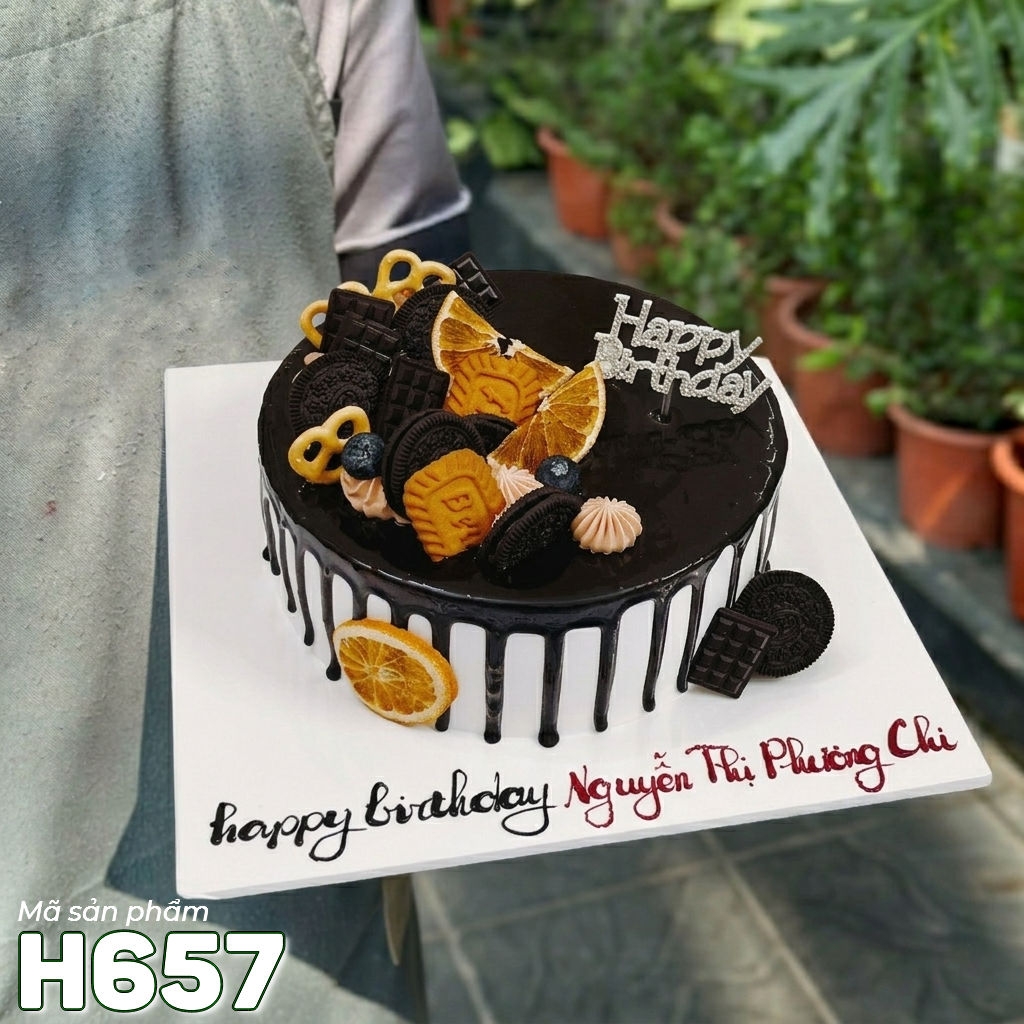 Bánh kem H657 trang trí bánh quy socola và cam lát phong cách Vintage