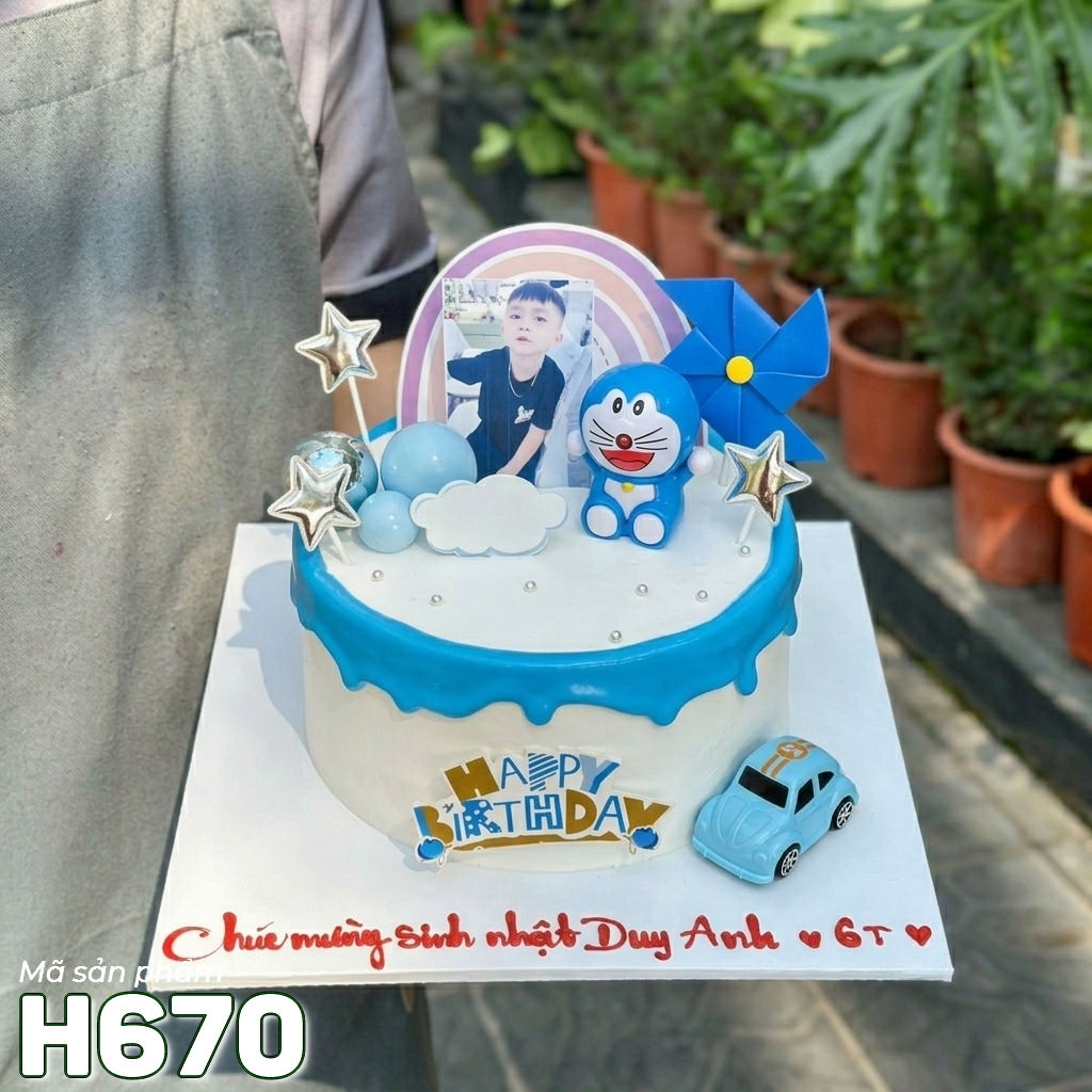 Bánh kem H670 chủ đề Doremon và xe hơi năng động cho bé trai