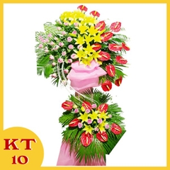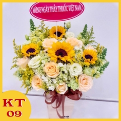 Bánh kem hũ vàng tiền đô U08 màu vàng nơ đỏ cùng những đóa hoa vàng may mắn