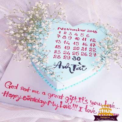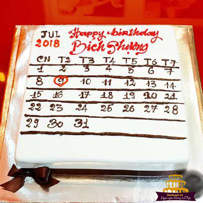 Bánh kem đẹp L52 trái tim vẽ lịch đơn giản mà ý nghĩa