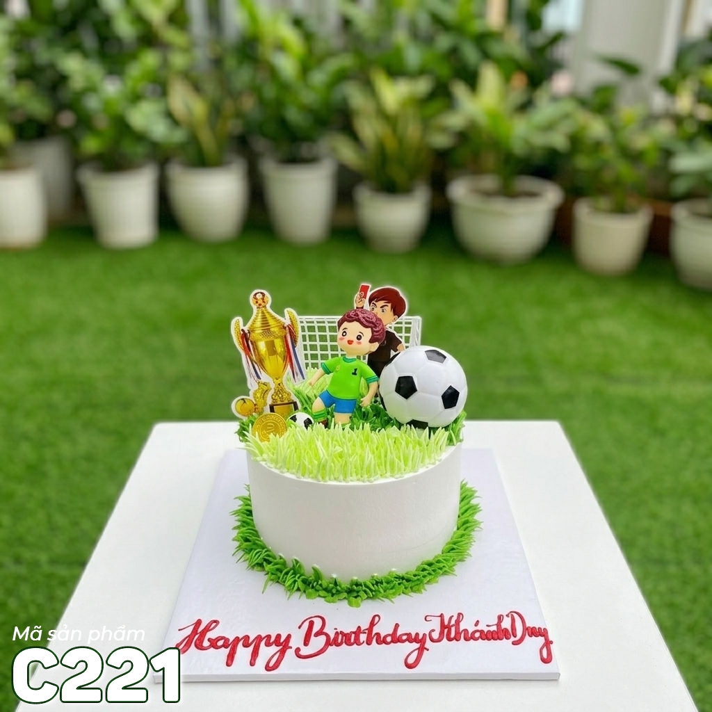Bánh kem mini C221 chủ đề bóng đá sân cỏ năng động