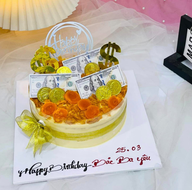 Bánh kem sinh nhật H464 tặng sếp nam xe hơi và phụ kiện đô la tài lộc