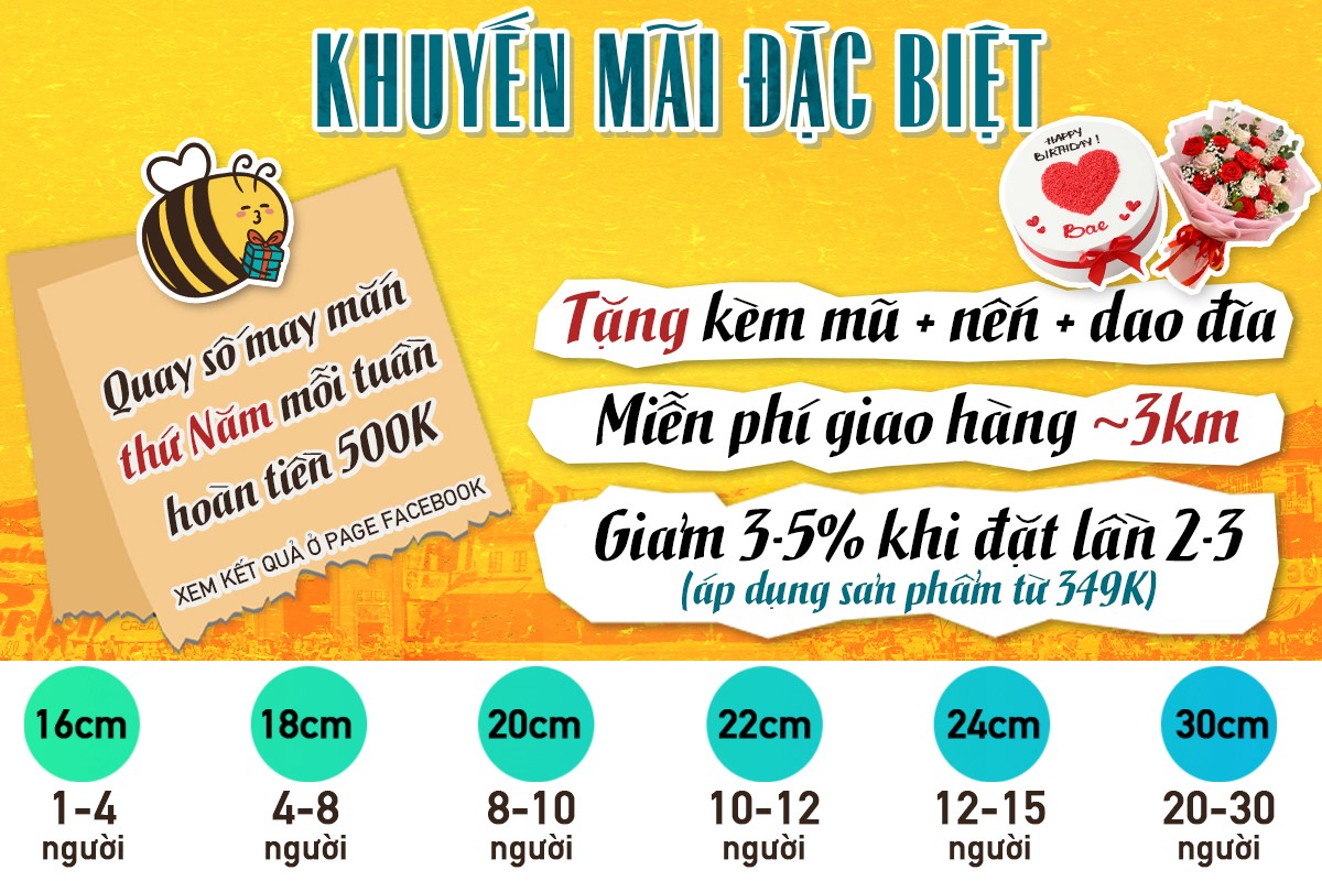 🎁Tiệm bánh kem Mũi Né Ưu đãi trọn đời, giảm 3% khi đặt lần 2, giảm 5% từ lần 3 trở đi