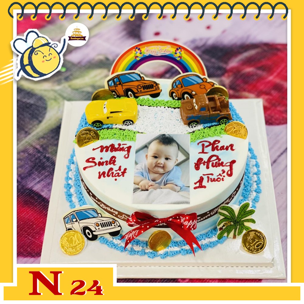 Bánh kem N24 in hình bé yêu phụ kiện đầy tháng thôi nôi đáng yêu