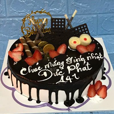 Bánh kem sinh nhật CF05 chảy socola đen cùng trái cây chuẩn vị tuổi thơ