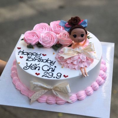 Bánh kem sinh nhật CF19 màu hồng cùng búp bê bé gái xinh iu