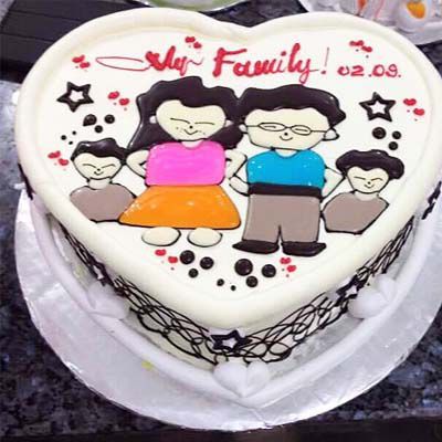 Bánh kem đẹp L32 vẽ hình cả nhà yêu dấu ý nghĩa tuyệt vời