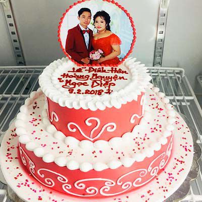 Bánh đa dạng hình thức, đẹp tinh tế đến từng chi tiết nhỏ bằng kem đã là một lợi thế của tiệm từ trước đến nay. Hơn nữa mẫu bánh cưới cho đôi bạn trẻ thường được làm từ 2 tầng trở lên với màu đỏ thắm, tựa như tình cảm rực lửa vượt qua thử thách để đến một ngày được về chung một nhà.