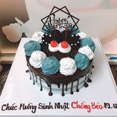 Bánh kem sinh nhật H335 tặng chồng màu xanh nước biển viền kem trắng