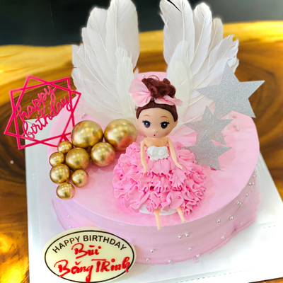 Bánh kem sinh nhật CF19 màu hồng cùng búp bê bé gái xinh iu