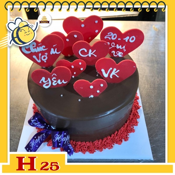 Bánh kem phụ nữ 20/10 H25 phủ socola cắm trái tim socola đỏ phù hợp tặng vợ, bạn gái