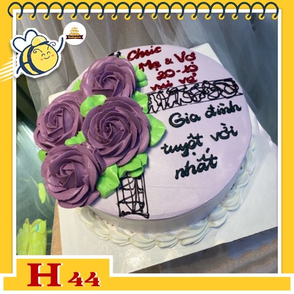 Bánh kem phụ nữ 20/10 H44 nền tím nhạt bắt hoa màu tím bố cục mới lạ